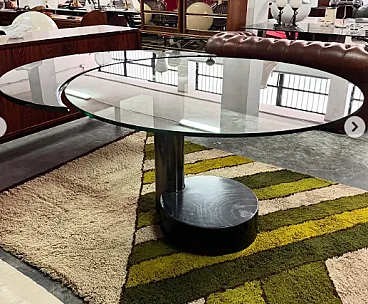 The contrast between glass and structure gives the table a very strong but balanced presence, ideal in both modern and mid-century environments.