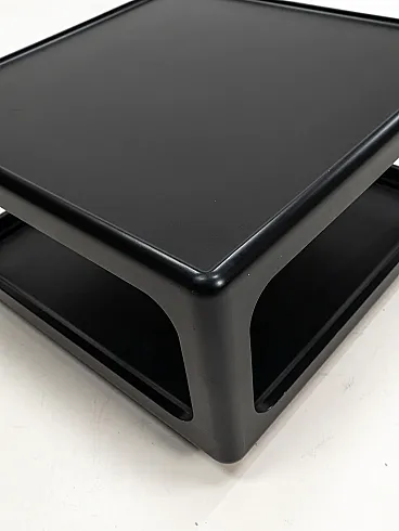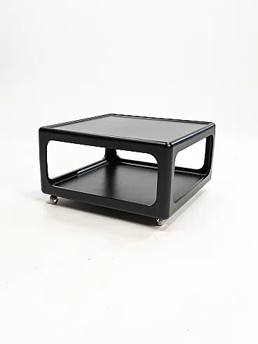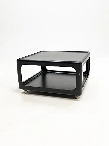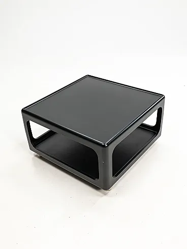 Vintage coffee table designed by Peter Ghyczy for his Horn Collection, produced in Germany during the 1970s [2.2, 2.3]. This particular model is made from black lacquered polyurethane and typically features chromed casters