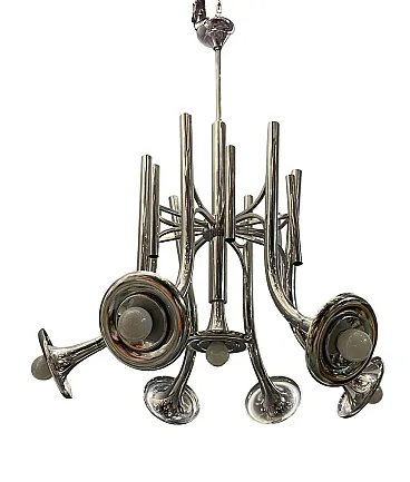 Mid-Century chromed metal chandelier, 1970s