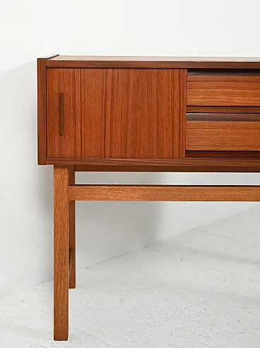 1950s-60s Scandinavian cabinet in teak and oak, with sliding doors and central drawers, with light and essential lines.