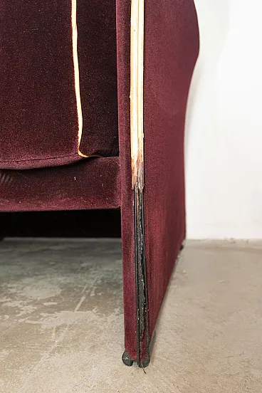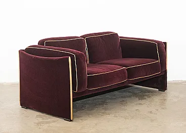 Cassina Duc two-seater sofa in original burgundy velvet, 1970s design by Mario Bellini