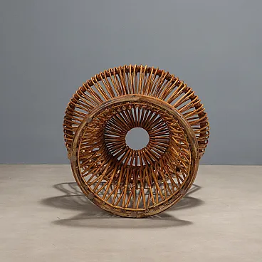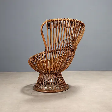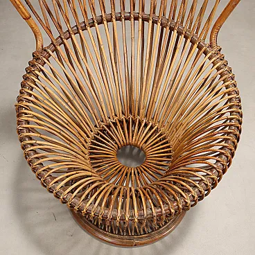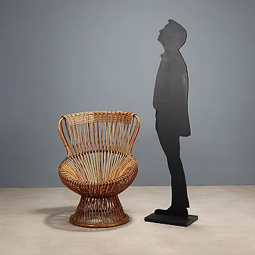 Armchair made of wood and rattan in good overall condition with some signs of wear, as shown in the photos. Cushion missing.