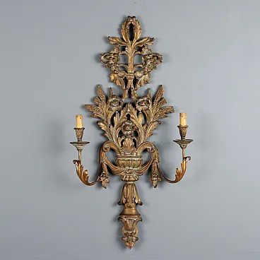Carved and gilded wooden wall lamp, early 20th century