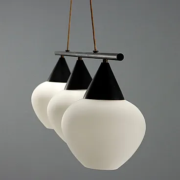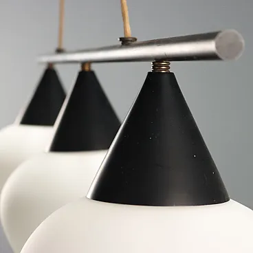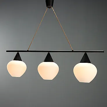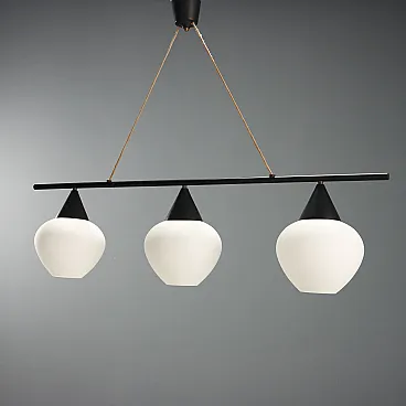 Lacquered metal lamp with opal glass diffusers, 20th century