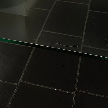 The piece perfectly embodies the design culture of those years, when formal rigor entered into dialogue with a renewed focus on materiality and surface. The composition is organized around a solid central steel base with a strong architectural, monolithic character, providing both visual and structural stability. Resting above is a top in acid-etched glass, chosen not only for its formal elegance but for its ability to filter and diffuse light, creating a soft and sophisticated visual effect, far removed from the coldness of clear glass.