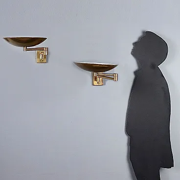 Pair of brass wall lamps with articulated arm, 20th century 1