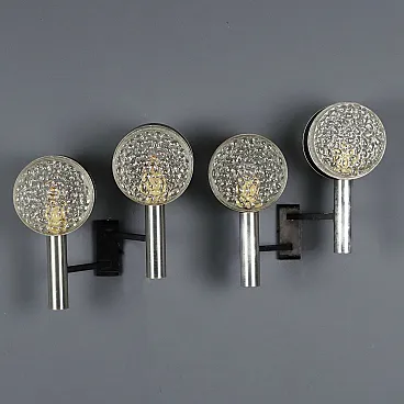 Pair of wall lights in metal, aluminum and glass, 20th century