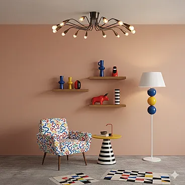 Brass ceiling lamp, 1950s