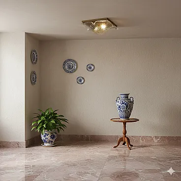Ceiling lamp with metal frame and glass diffuser, 20th century 1