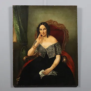 Lady seated in an armchair, oil on canvas, Italian school,19th century