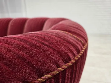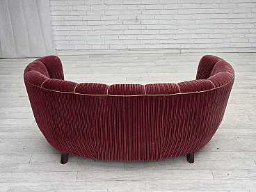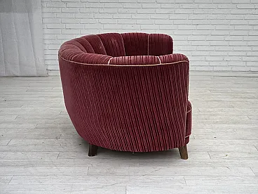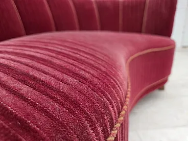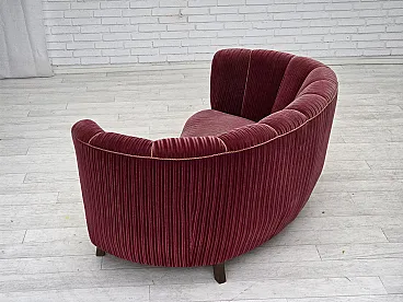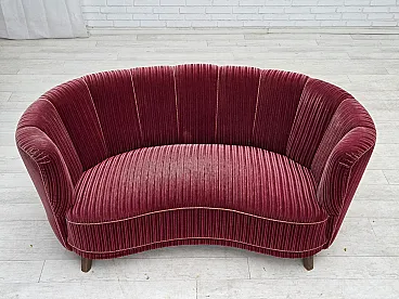 Danish 2-seater Banana sofa, red velour, oak wood, 1960s