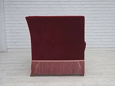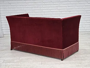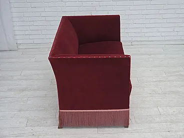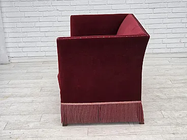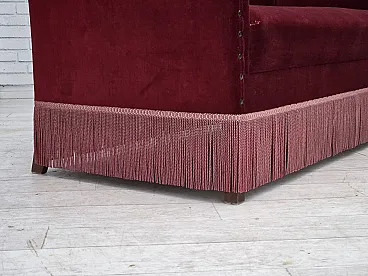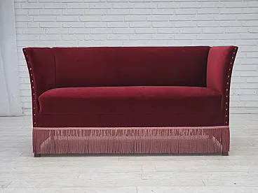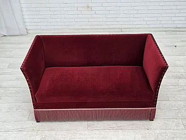 Danish 2-seater sofa, cherry-red velour, 1970s