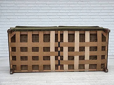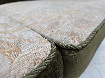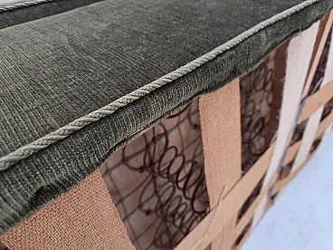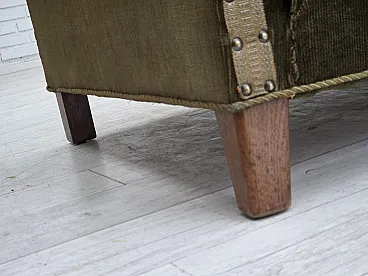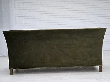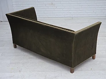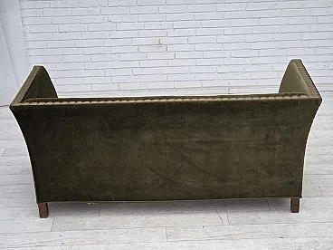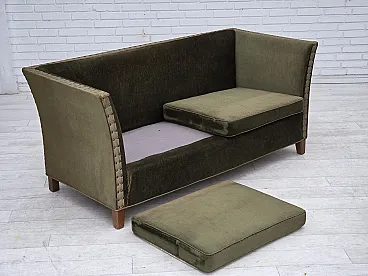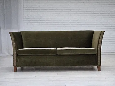 Danish 2-seater sofa, green velour, oak wood, 1970s
