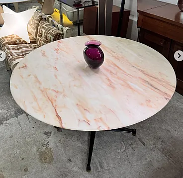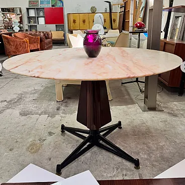 Dining table with thick Rose of Portugal marble top, 1960s.