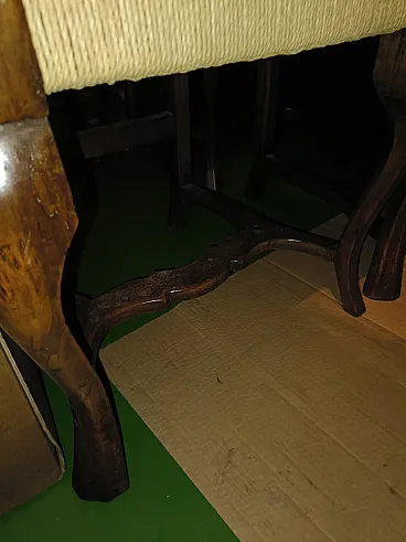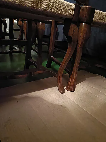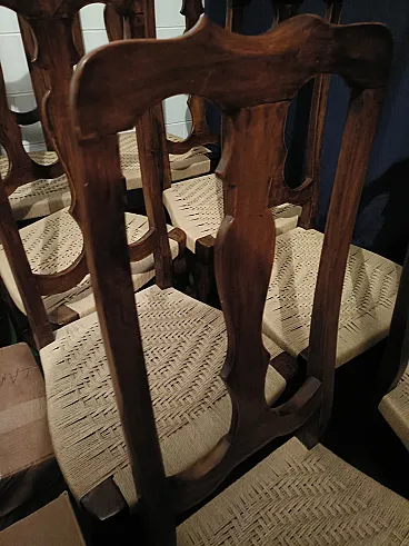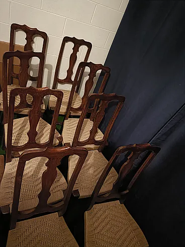 8 Carved Walnut Dining Chair Set with Straw Seats, 50s
