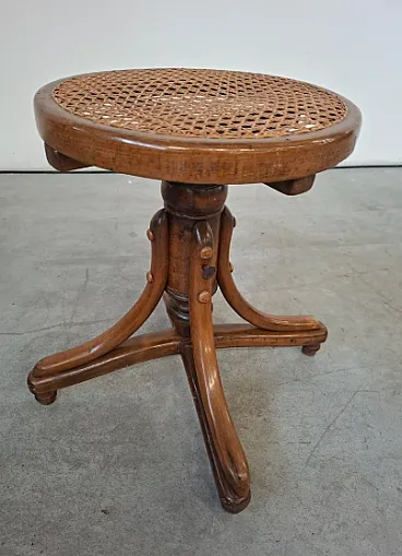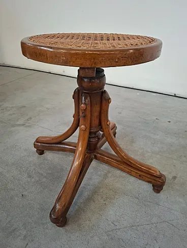 Elegant vintage stool in Central European style, made of steam-bent solid beech. This piece combines early 20th-century craftsmanship with surprising versatility thanks to its smooth and sturdy screw mechanism.