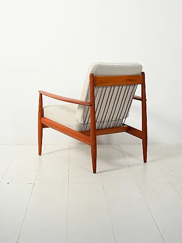 Elegant 1960s Danish armchair in teak, an expression of Grete Jalk's organic modernism, with original structure and refined proportions.