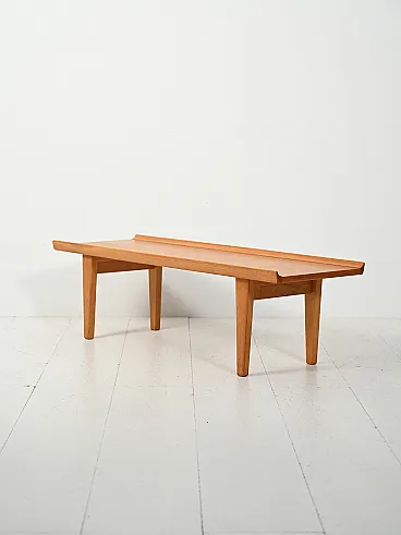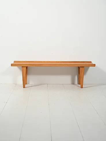 Scandinavian oak bench with an essential design, characterized by light proportions and refined workmanship of the top. “Novett” model oak bench, designed by Erik Wørts, a significant example of the most measured and functional Danish modernism. The project stands out for the slightly recessed top framed by a continuous edge, a detail that combines function and formal precision. The tapered legs, nestled with balance beneath the top, reflect Wørts' attention to structural clarity and quality craftsmanship. Active in the Danish design scene of the second half of the twentieth century, Erik Wørts is known for a sober language, close to tradition but open to a discreet modernity without excess. Good condition. It may show some signs of aging. Please pay attention to the photographs.