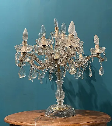 Large crystal candelabra table lamp, 1960s 9