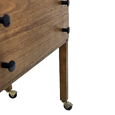 Step back in time with this exquisite Modernist threader from the 1960s, a true testament to the utilitarian design of Eastern Europe. Crafted in East Germany, this original tailor's thread stand combines functionality with a sleek, modernist aesthetic. The laminated furniture board frame is complemented by solid beechwood legs, mounted on original casters, offering both stability and mobility.