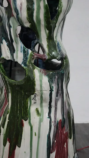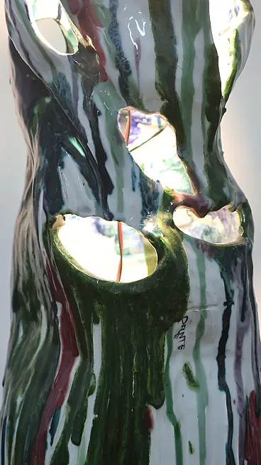Structure entirely in hand-painted polychrome ceramic, there is a signature “Dante”. Obviously the style is very similar to that of Ernesto Treccani. The item is in excellent condition, there are no aesthetic or structural defects to report, only slight and obvious signs of age due to use and age.