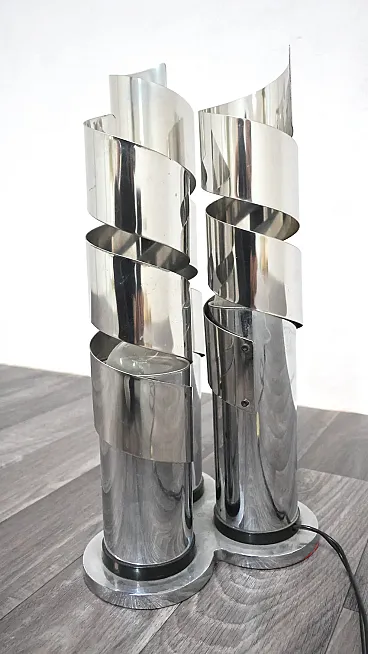 Spiral chrome steel table lamp attributed to Max Sauze, 1970s