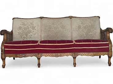 Danish 3-seater sofa, red velour, mesh, 1930s 1