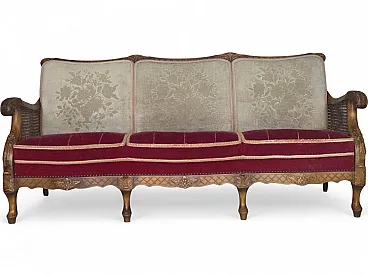 Danish 3-seater sofa, red velour, mesh, 1930s