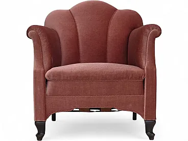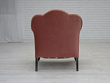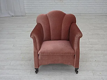 Danish armchair, salmon pink velour, oak wood, 1950s