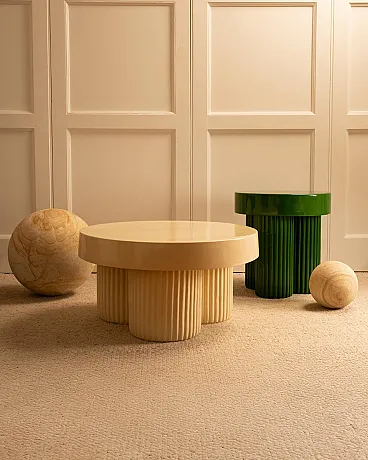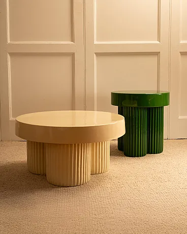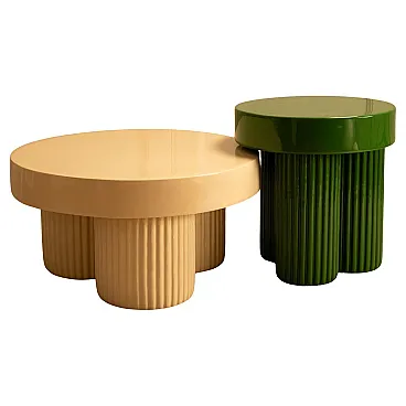 Pair of nesting concrete and lacquer tables, 1990s