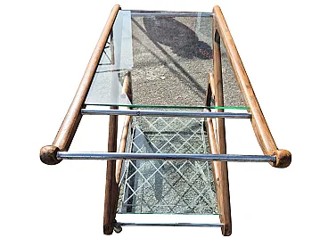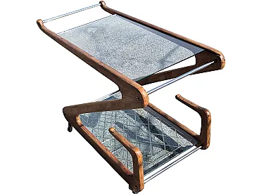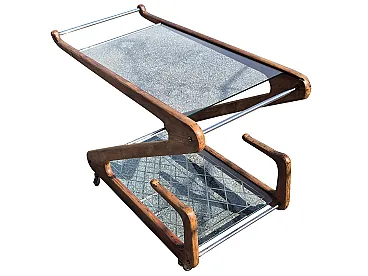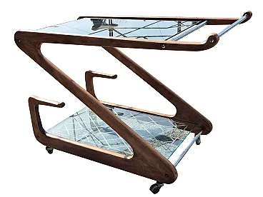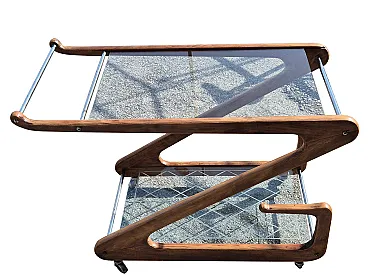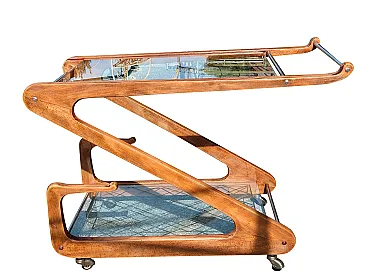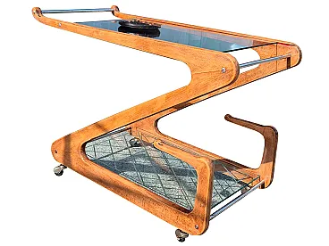 Elegant Italian bar cart from the 1950s attributed to Cesare Lacca, characterized by a sculptural structure in shaped and curved wood.