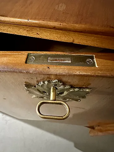 Made of maple wood, it has 5 important decorative brass friezes in the center of the 5 doors which function as escutcheons for the 5 all original locks.