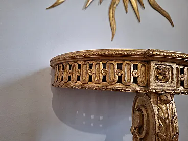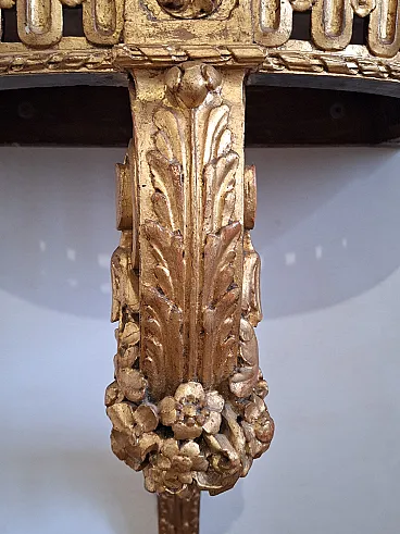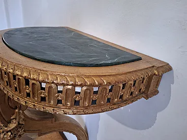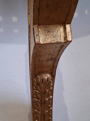 Console table carved wood with gilded leaf and faux marble top, 20th c
