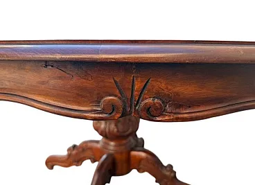 Composition: A round table in solid walnut wood coordinated with six chairs.