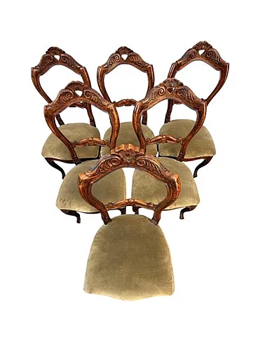 Chairs: Characterized by the famous "hot air balloon" backrest with decorative carvings and arched "sabre" front legs.