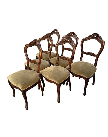 Seats: Padded and upholstered in an elegant iridescent green velvet, typical of the classic taste
