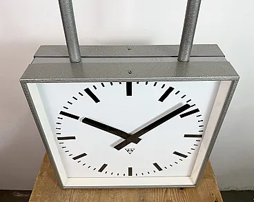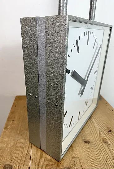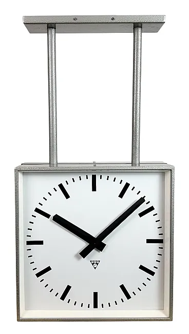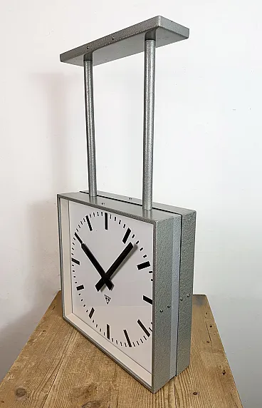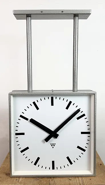 Large Square Industrial Double-Sided Clock from Pragotron, 1960s