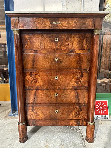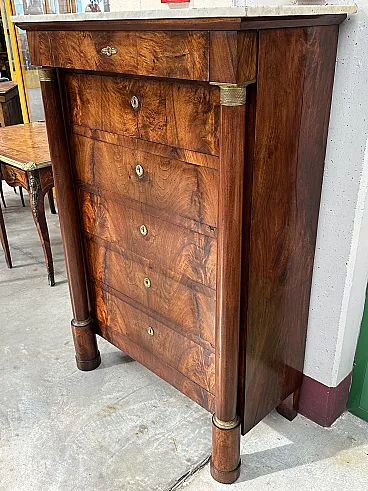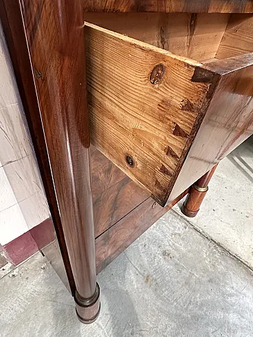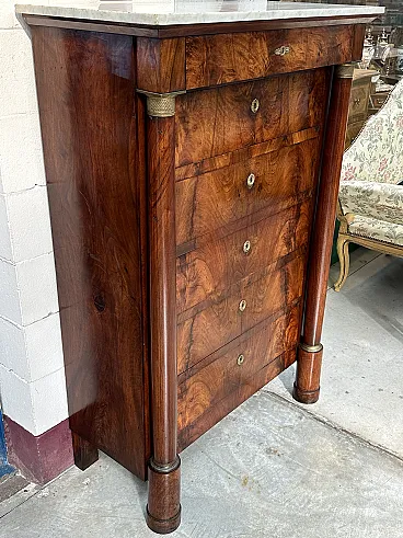 Empire secretaire in walnut feather with columns and bronzes, early 19th century