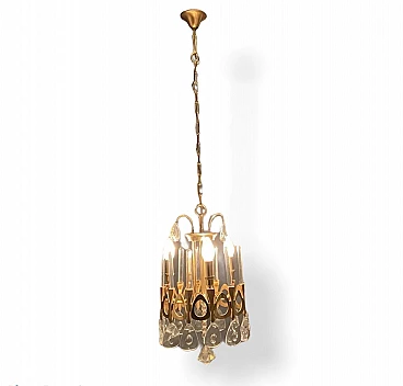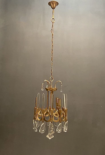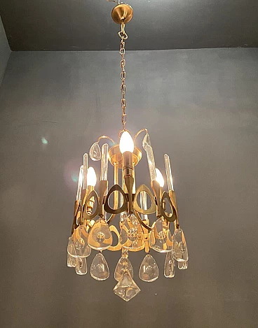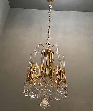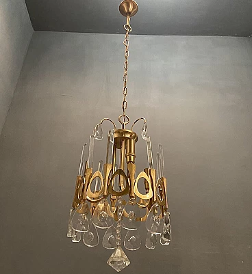 Chandelier in crystal and gilded metal attributable to Gaetano Sciolari, 70s