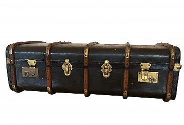 Travel trunk and leather. Fabric interior. Locks working with keys pair.