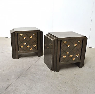 Pair of bedside table in rosewood in the style of Luciano Frigerio, 70s
