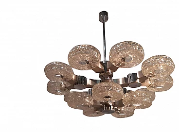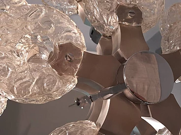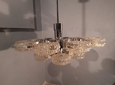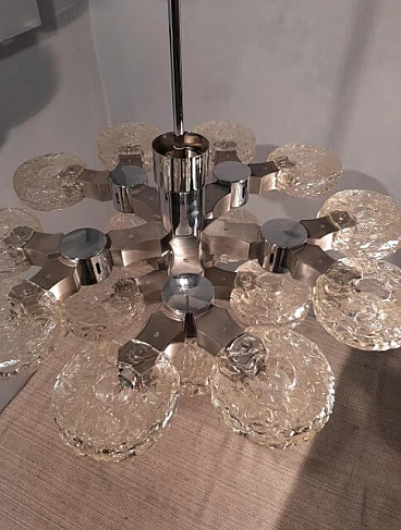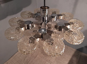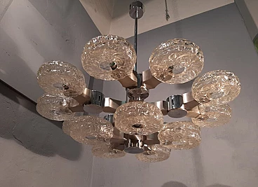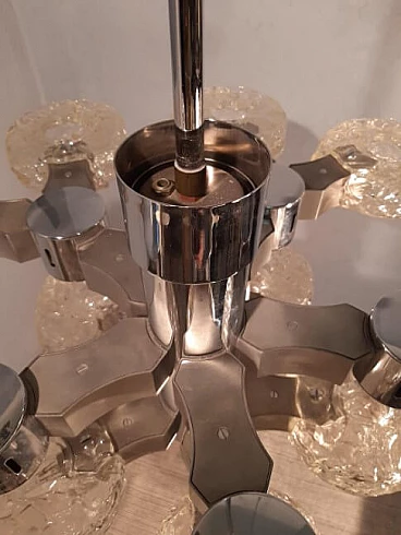 15-light ceiling lamp in chromed iron and ice glass by Gaetano Sciolari for Sciolari, 70s