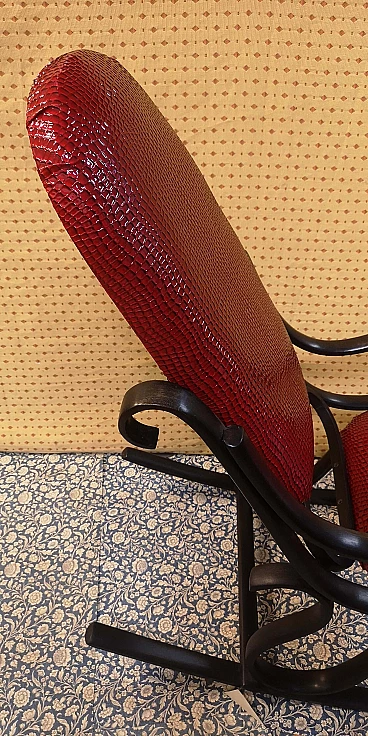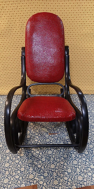 Thonet rocking chair in ebonised wood and imitation crocodile, 30s