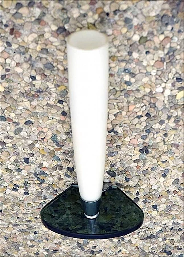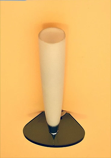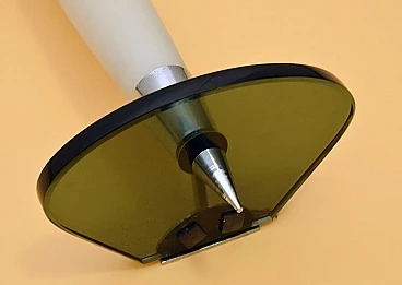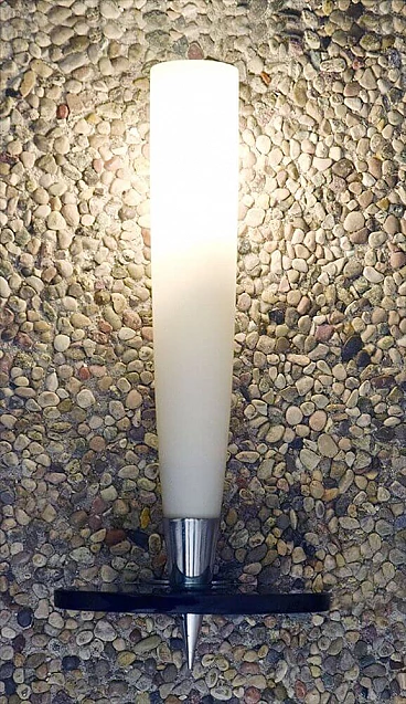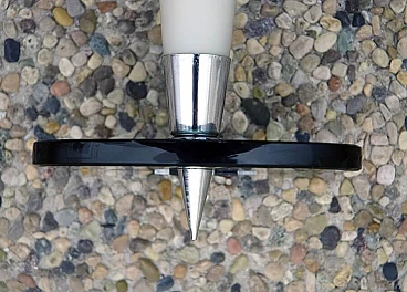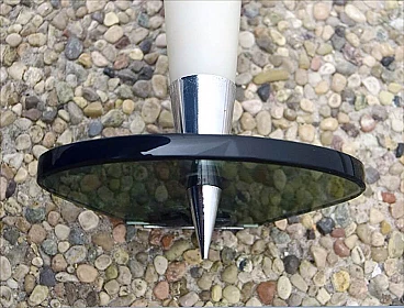 Pair of wall lamps in satin glass, smoked crystal and chromed brass, 50s