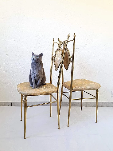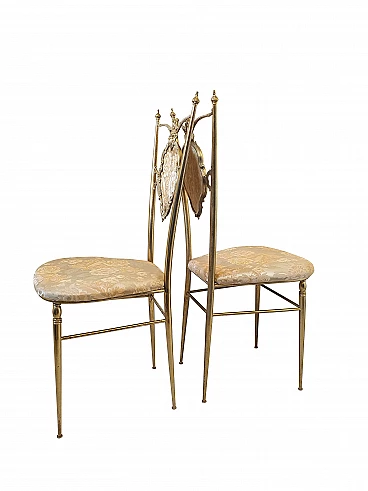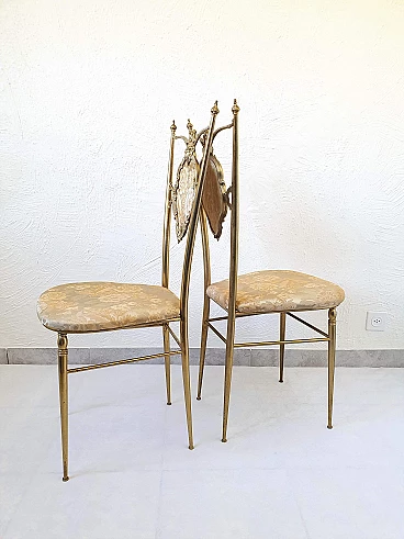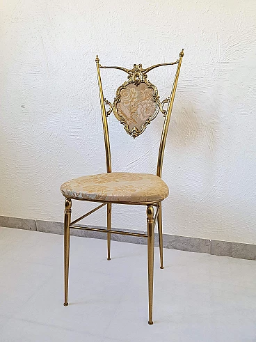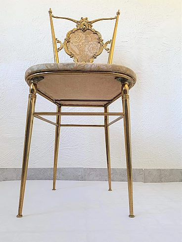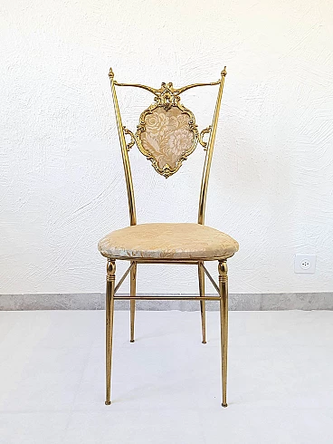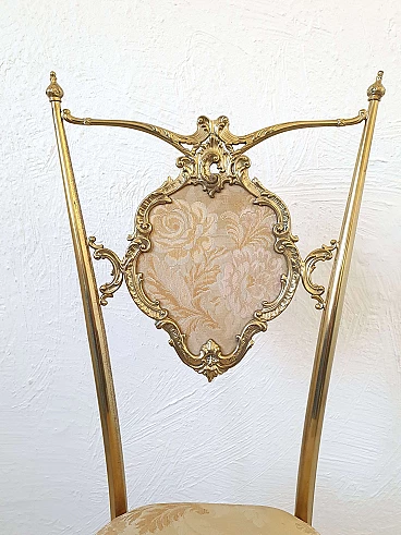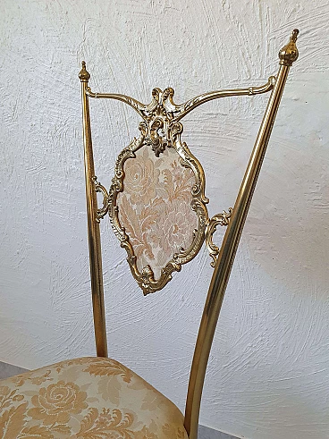 The frame of the chairs is in beautiful Florentine style, machined brass and the seat and back are in original Italian silk satin with a floral pattern. They are in a delightful vintage condition and can remain so or be refurbished for a more modern-elegant look, perhaps with bright velvet seats.