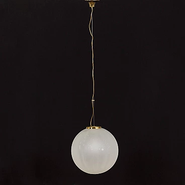 Murano glass handblown frosted drop pendant with brass details, 1970s