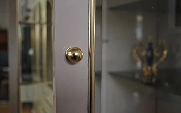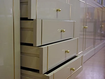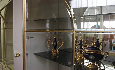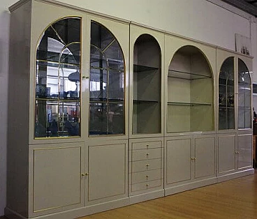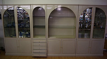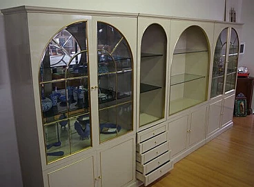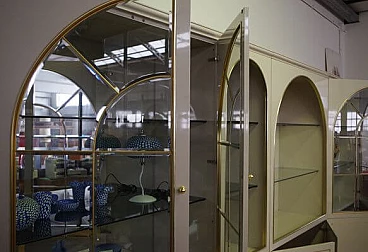4 Lacquered wood, glass and brass display cabinets by Mario Sabot, 1970s