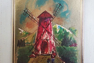 Landscape with windmill printed on gold leaf, 1984