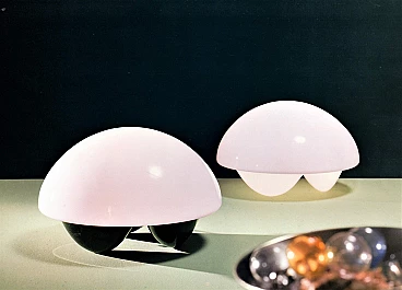 The Isotta lamp, produced by the Nucleo division of Sormani, is a splendid example of a fusion between the ancient technique of blown glass and the then avant-garde technology of thermoforming, to create furniture and accessories of industrial design made like cars. The result is a prestigious lamp, the daughter of the space age, but ultra-contemporary, with a romantic diffused light. Available in both black and white, the price refers to the individual lamp.