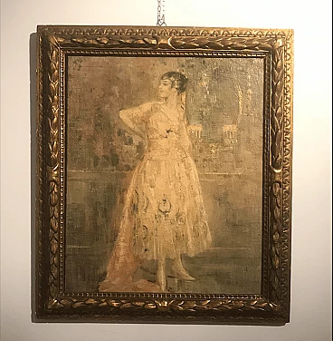 Oil on canvas with female subject by Luca Postiglione 1917